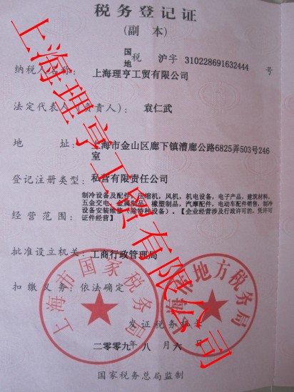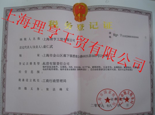 上海理亨稅務登記證