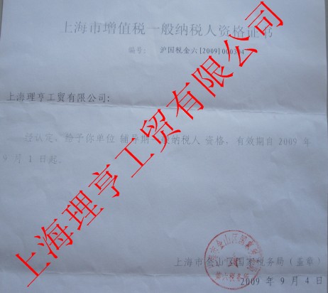 上海理亨一般納稅人資料