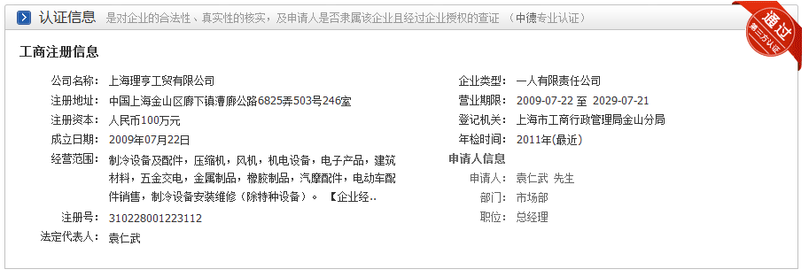 上海理亨誠信通會員證